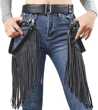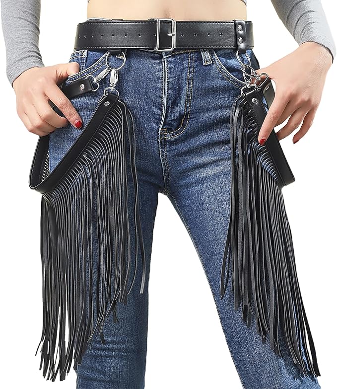 Women Waist Belt. Long Tassel Fringe PU Leather. Gothic Waistband, Adjustable